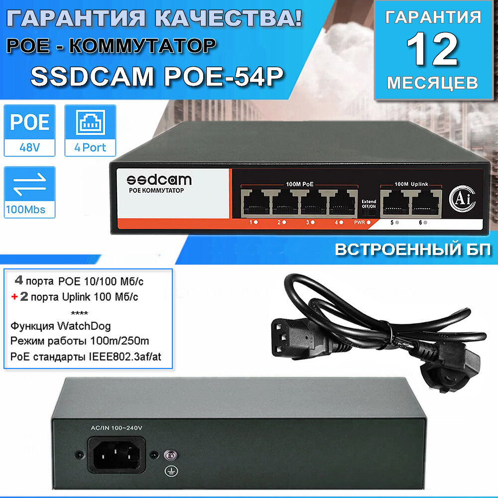 SSDCAM POE-54P. Коммутатор PoE для подключения IP- видеокамер