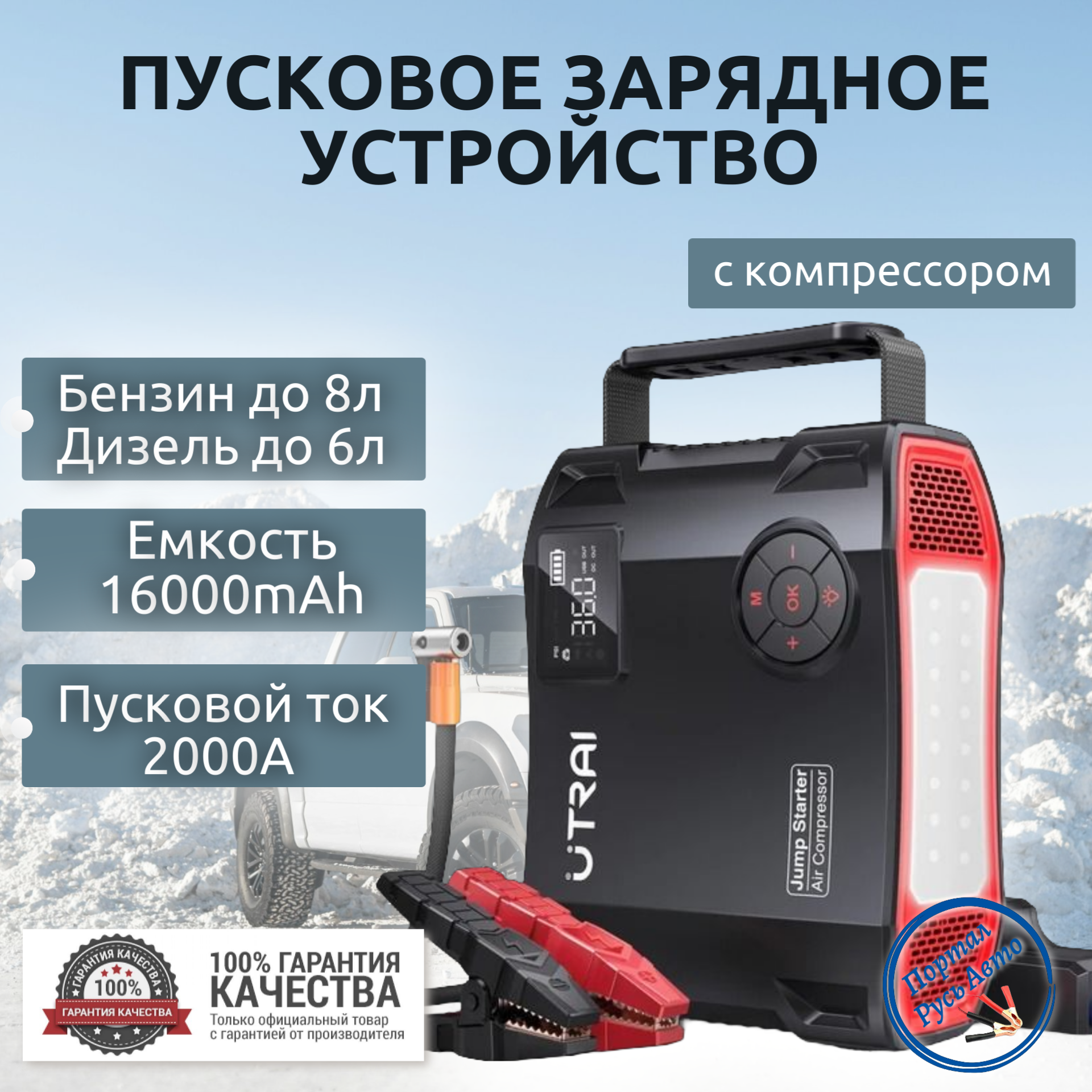 Пусковое портативное устройство, бустер UTRAI 8000mAh 1000A