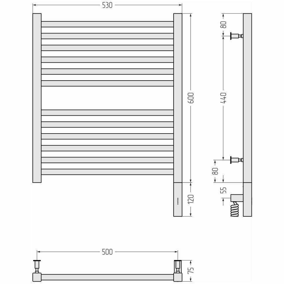 Полотенцесушитель электрический Сунержа Модус 3.0, 600х500, МЭМ правый, матовый чёрный 31-5701-6050