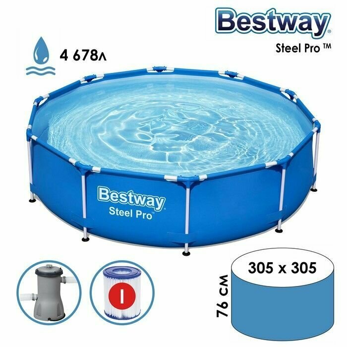 Бассейн Bestway, каркасный, круглый, с насос-фильтром, 305x76 см