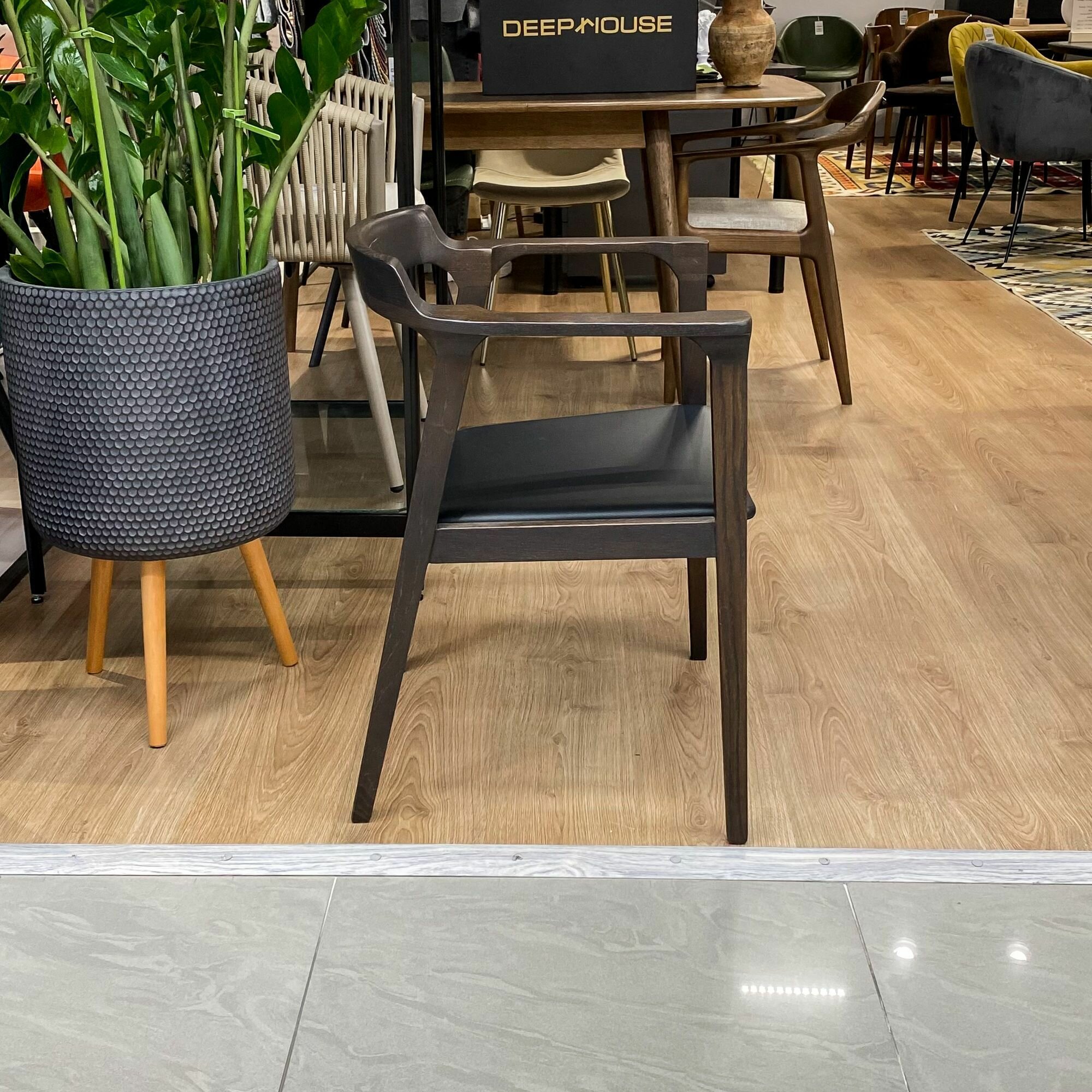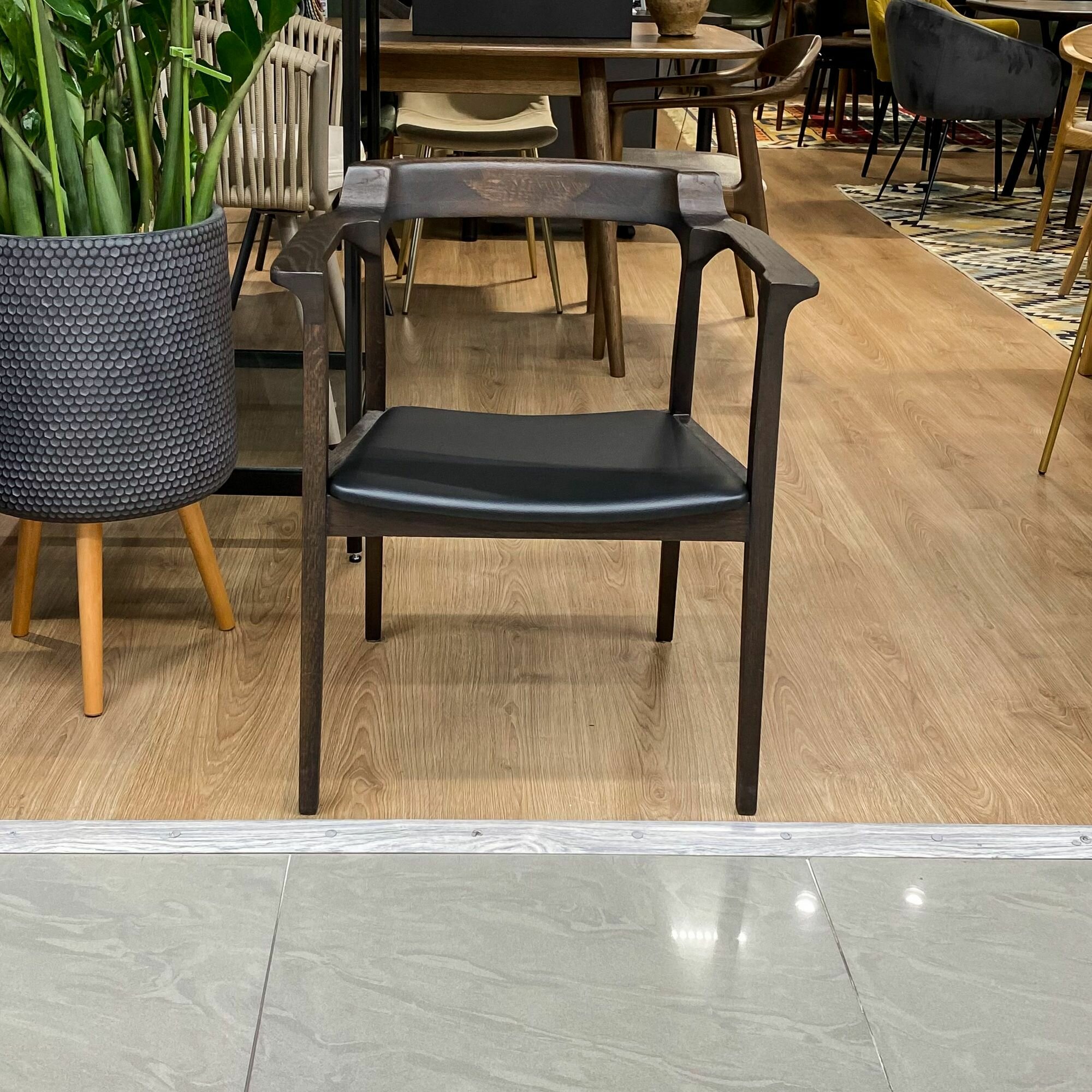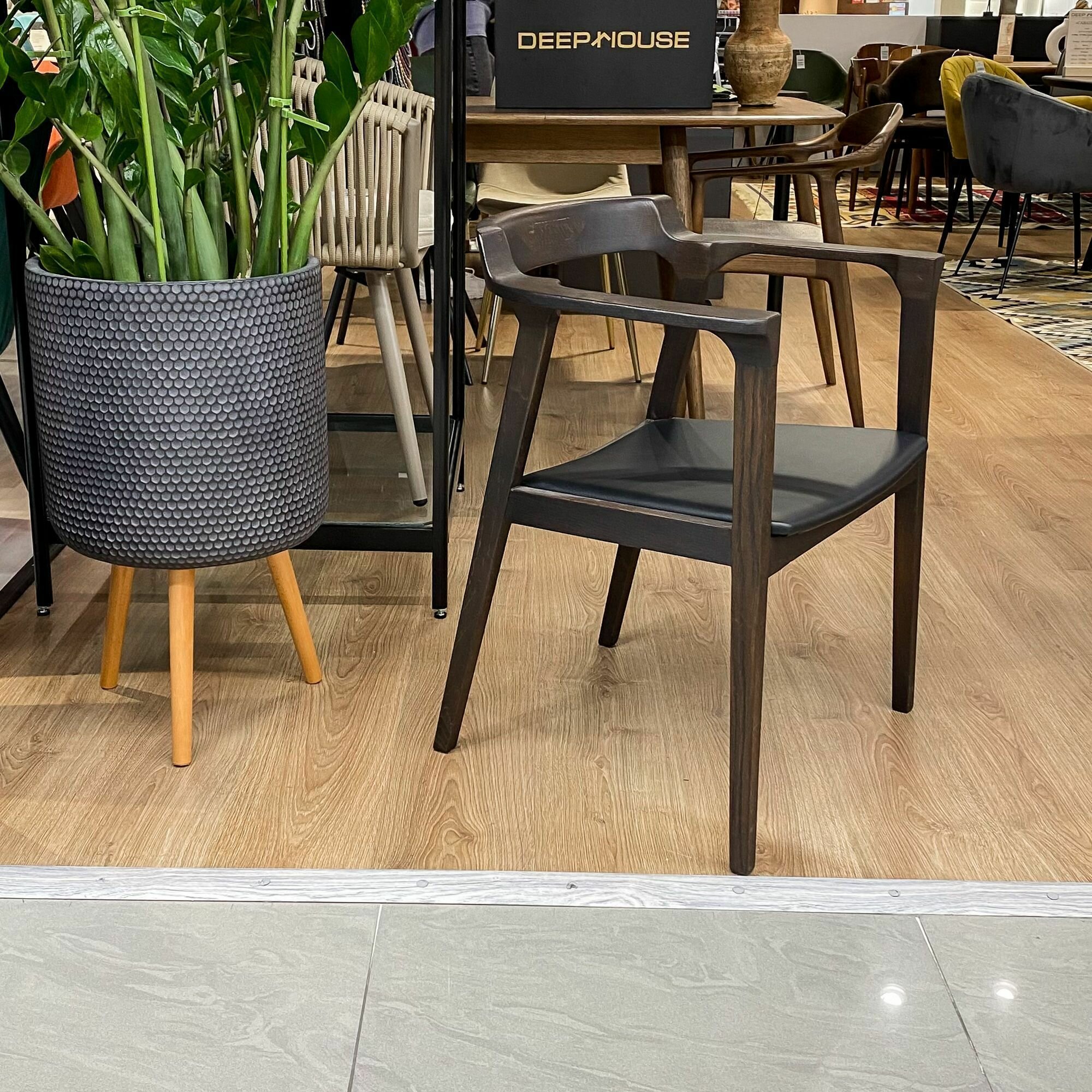 Стул DeepHouse Нью-Йорк массив дуба, тон американский орех нью, черная натуральная кожа для кухни, гостиной