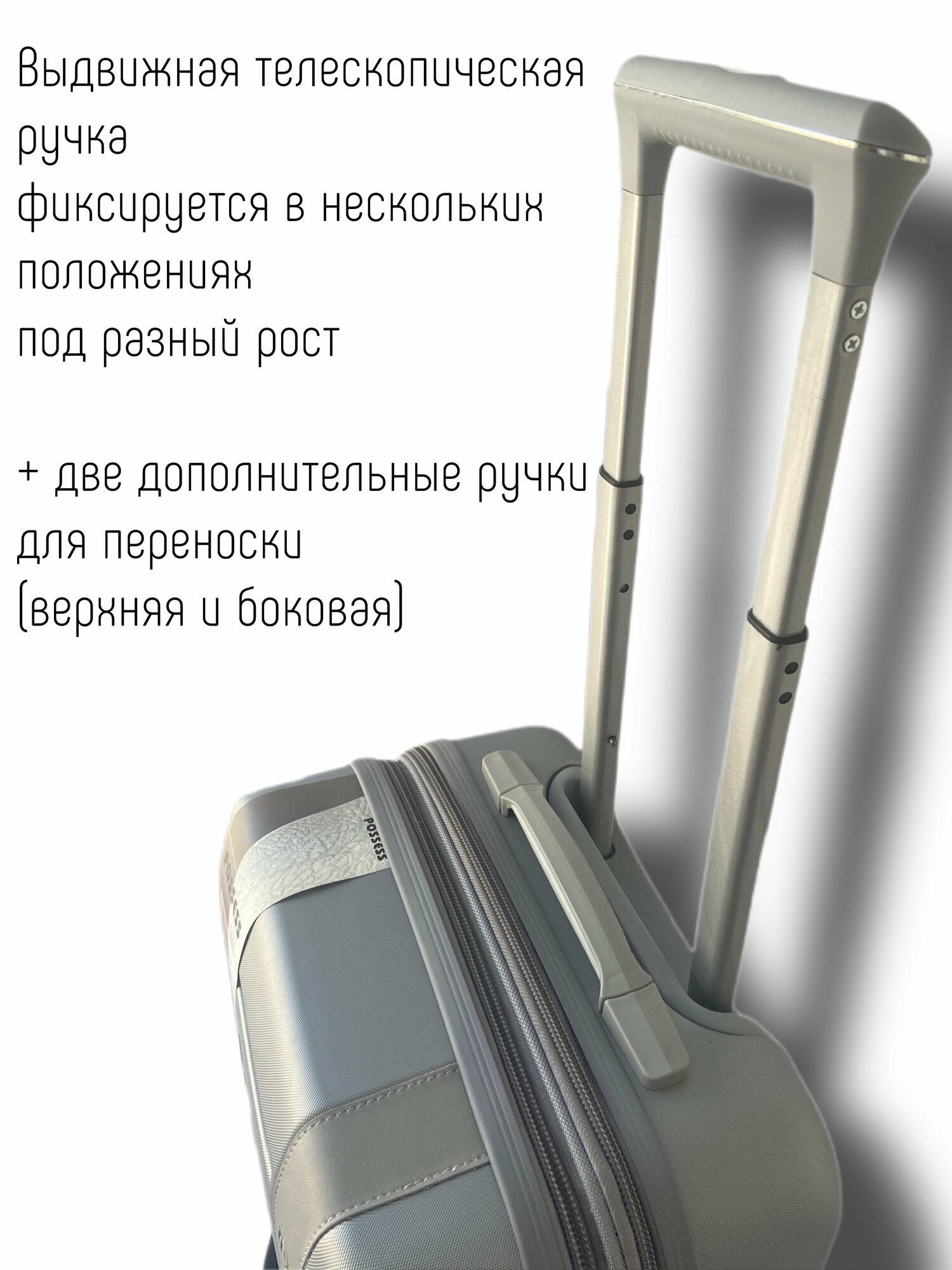Купить Чемодан на колесах/72 литра/поликарбонат/4 съемных колеса/серебро