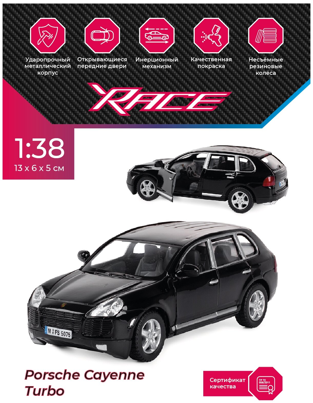 Машина 5075DKT инерционная металлическая 1:38 Порше Кайен Турбо 74342