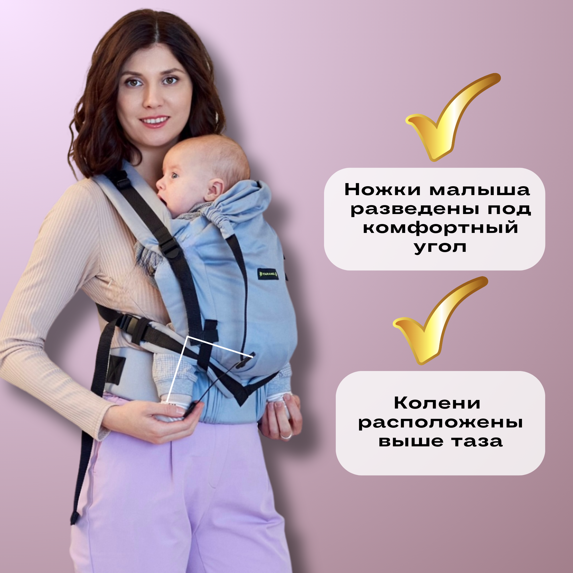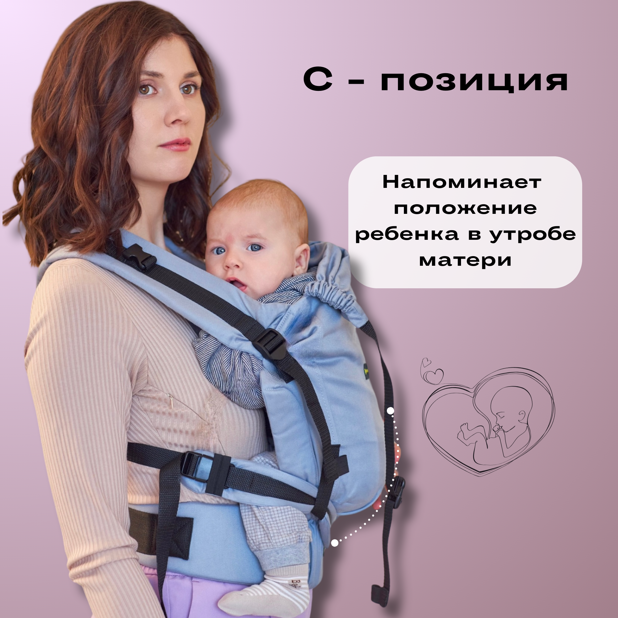 | Положение ребенка | сидя лицом к родителю / на бедре |