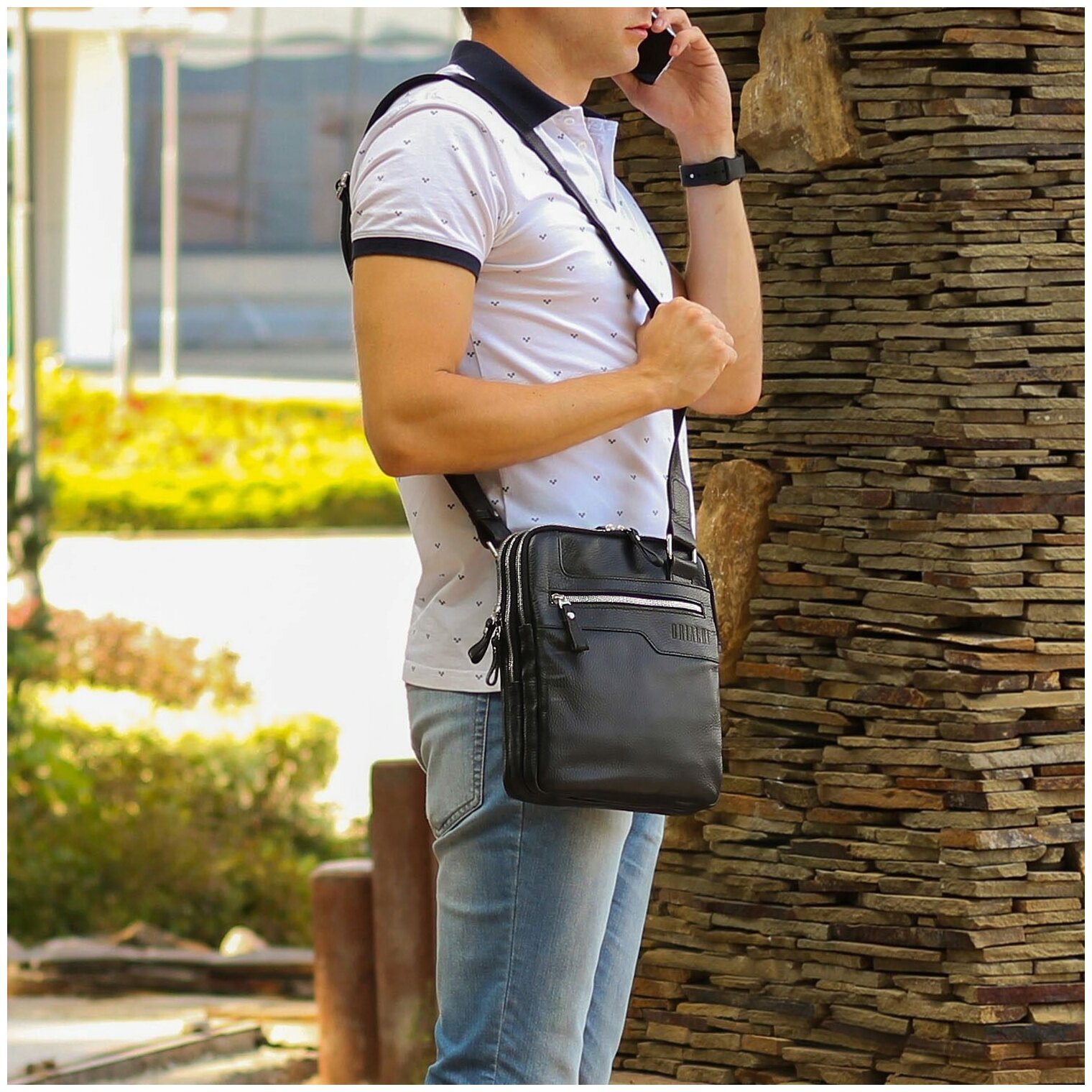 Мужская кожаная сумка через плечо BRIALDI Taller BR34410TO relief black