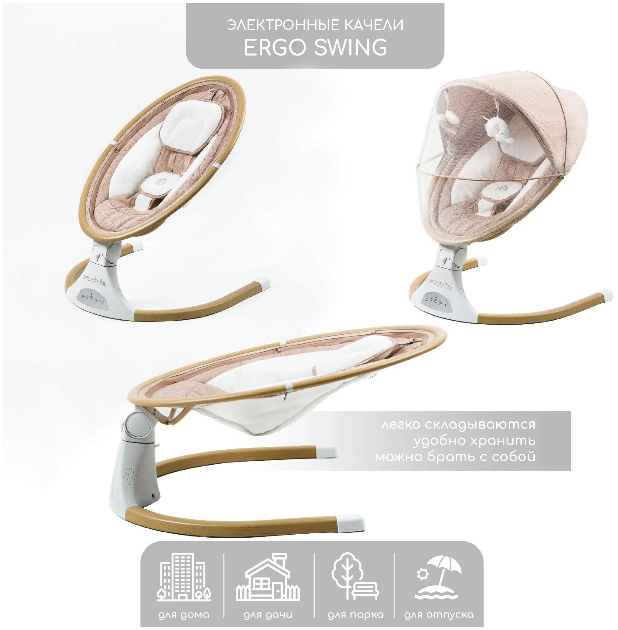 Электрокачели Amarobaby Ergo swing бежевый (AB22-22ERGO/03)
