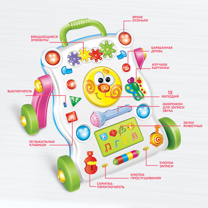 Развивающая каталка-ходунки Первые шаги, световые и звуковые эффекты ZABIAKA 2868005 . интересное: