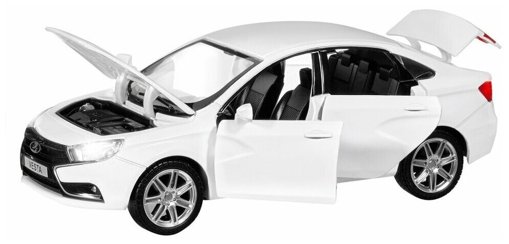 Машина металлическая «Lada Vesta седан» 1:24, цвет белый, открываются двери, капот, багаж, световые и звуковые эффекты