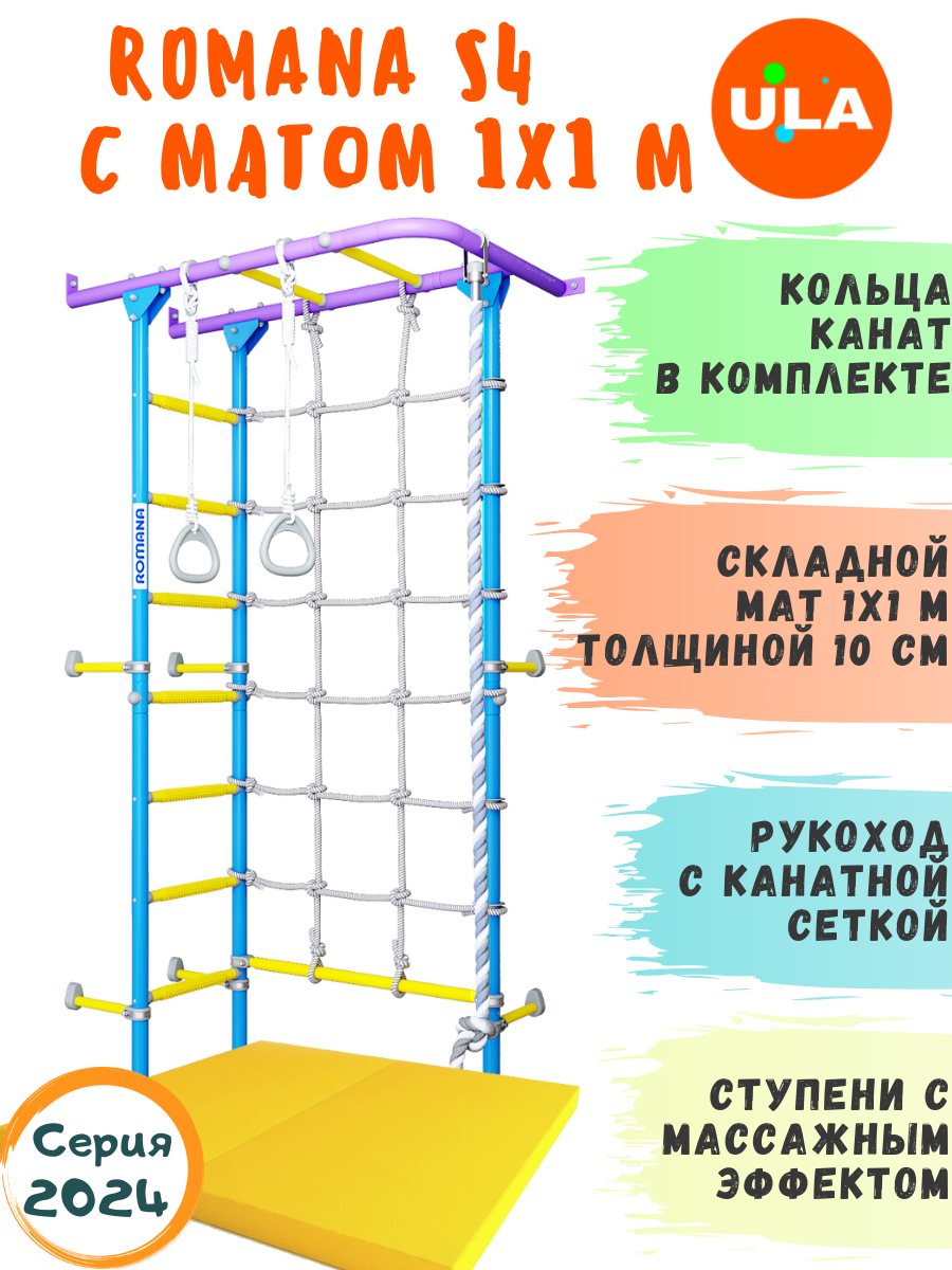 Шведская стенка ROMANA S4 с матом 1х1 м, цвет пастель