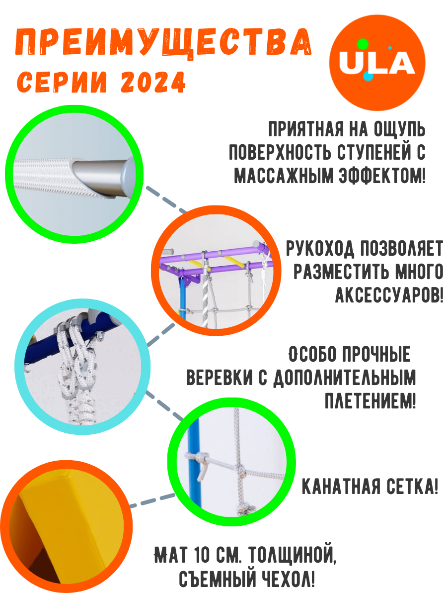 | В комплекте | гимнастические кольца, канат, мат, рукоход, сетка для лазания |