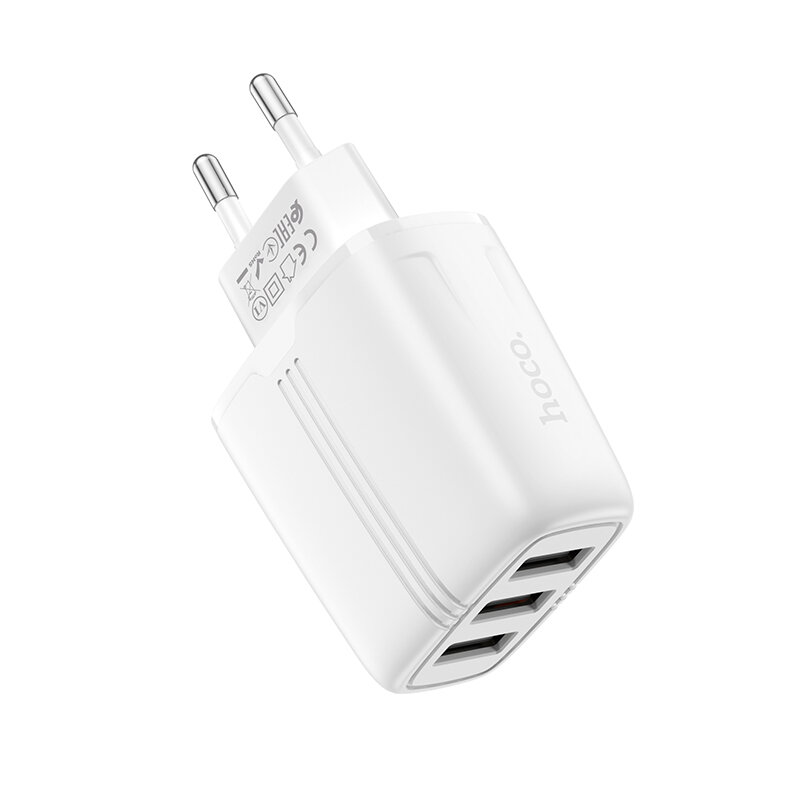 Сетевое зарядное устройство, 3 USB 2.4A (N15), HOCO, Безопасный сертификат, белый