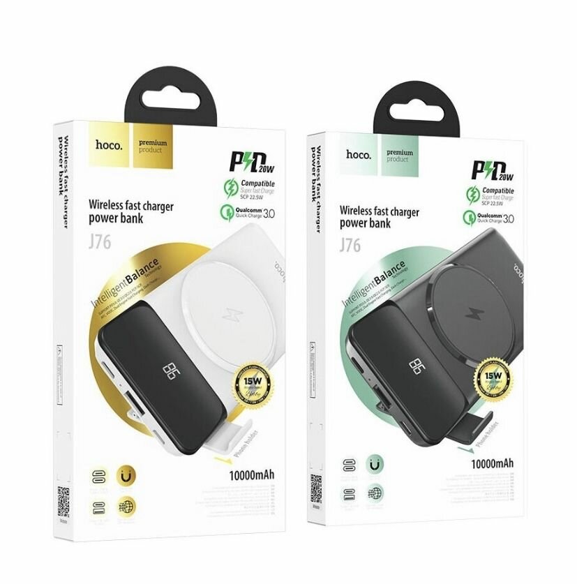 Power bank HOCO J76 10000 mAh PD 20W + QC3.0 с беспроводной зарядкой белый