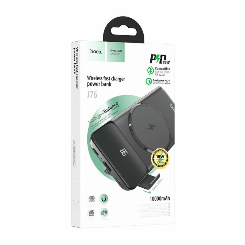 Купить Power bank HOCO J76 10000 mAh PD 20W + QC3.0 с беспроводной зарядкой черный