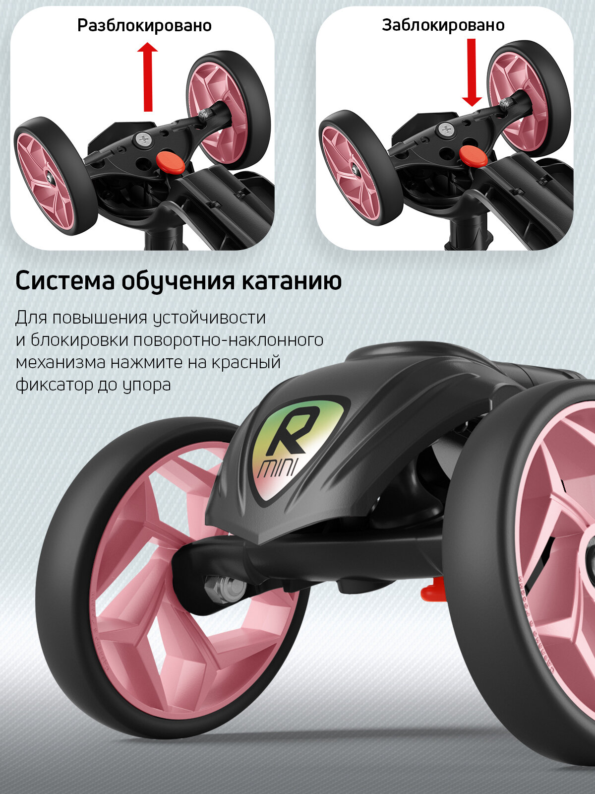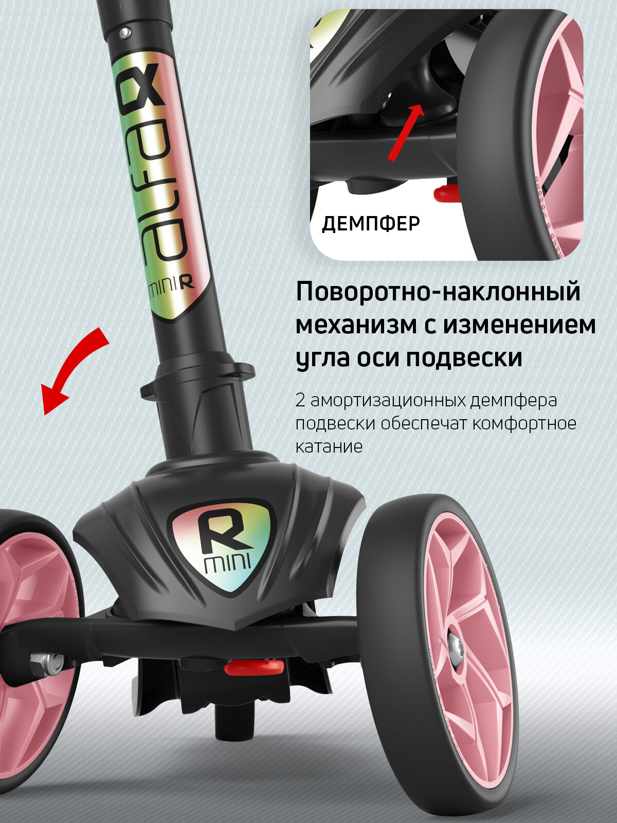 Самокат, самокат трехколесный детский, с цветными колесами и цветными ручками, Buggy Boom Alfa Mini R, ягодный сорбет