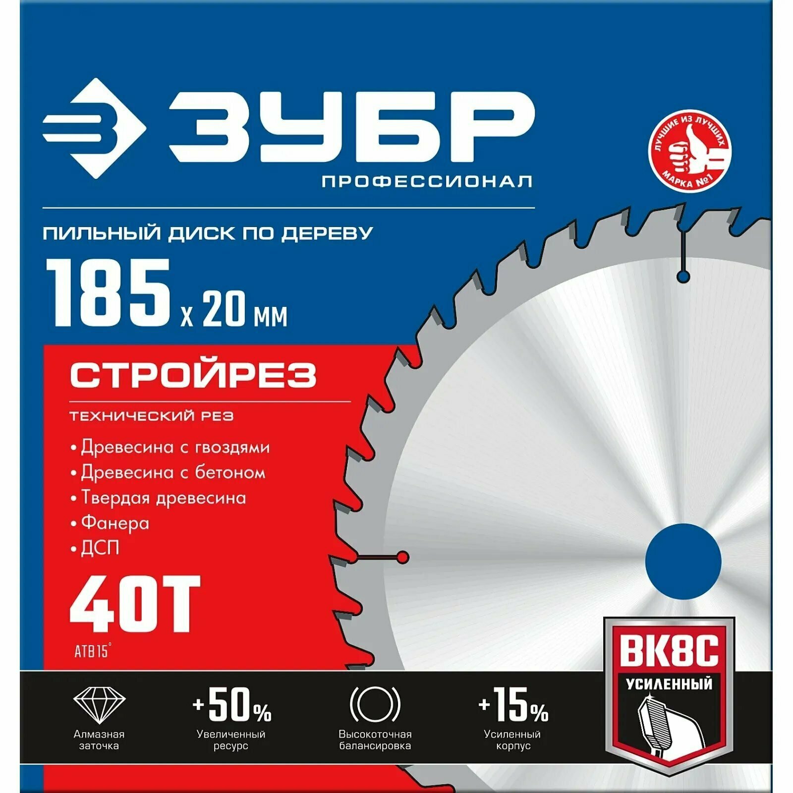 Зубр Стройрез 185х20мм 40Т, диск пильный по строительной древесине Зубр Стройрез 185х20мм 40Т, диск .
