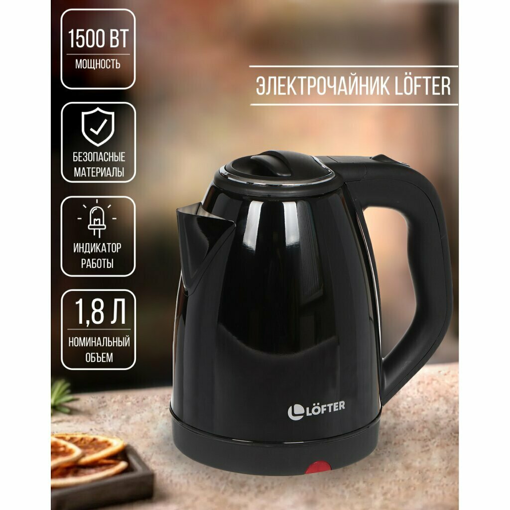 Чайник электрический Lofter, H3, черный, 1.8 л, 1500 Вт, скрытый нагревательный элемент, металл интересное: