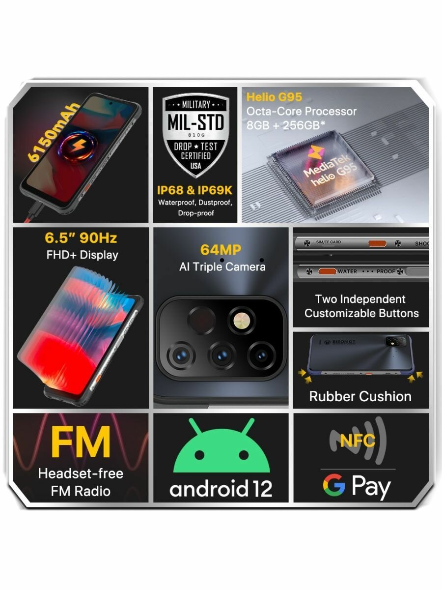 Смартфон UMIDIGI Bison GT2 Pro 8/256 ГБ, Dual nano SIM, черный интересное: