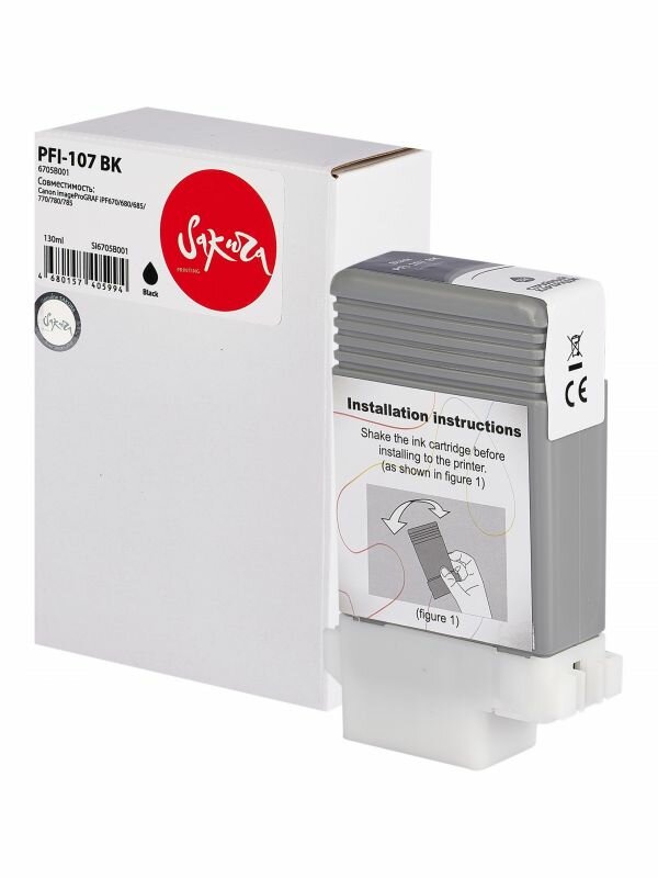 Струйный картридж Sakura 6705B001 ( PFI-107 BK) для Canon imageProGRAF iPF670/680/685/770/780/785, водорастворимый тип чернил, черный, 130 мл.