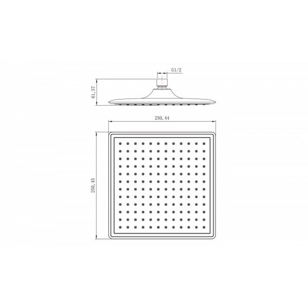Лейка душевая верхняя квадратная 250х250мм, хром
