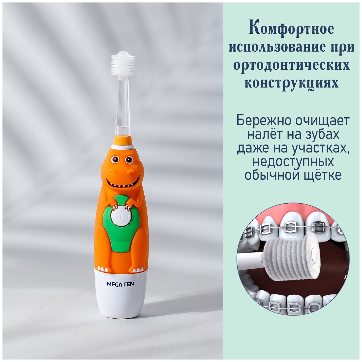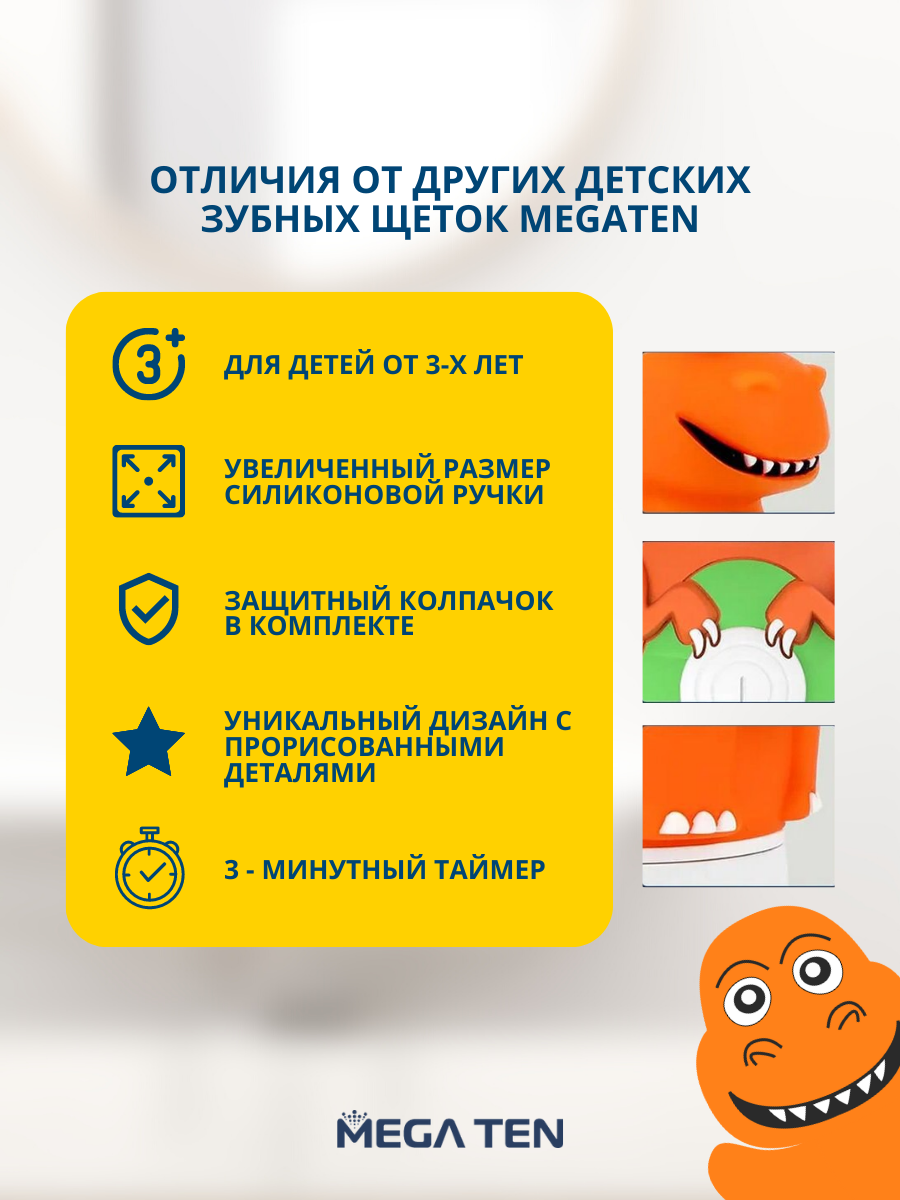Электрическая звуковая зубная щётка MEGA TEN для детей "Динозавр"