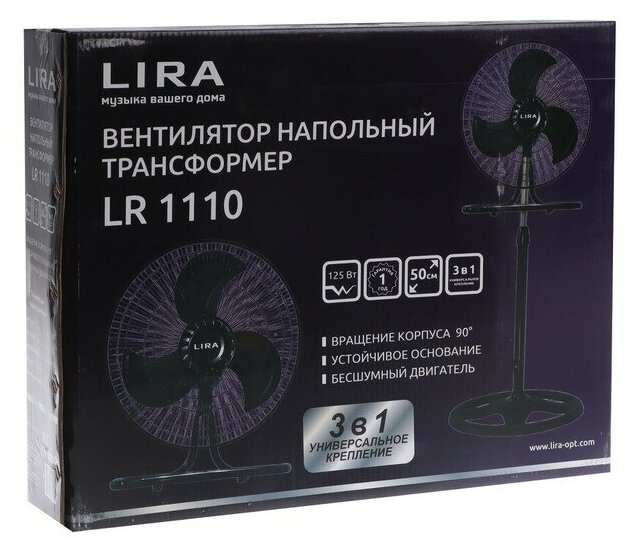 Вентилятор напольный/настольный LIRA LR 1110, 125 Вт, трансформер, 3 режима работы, черный