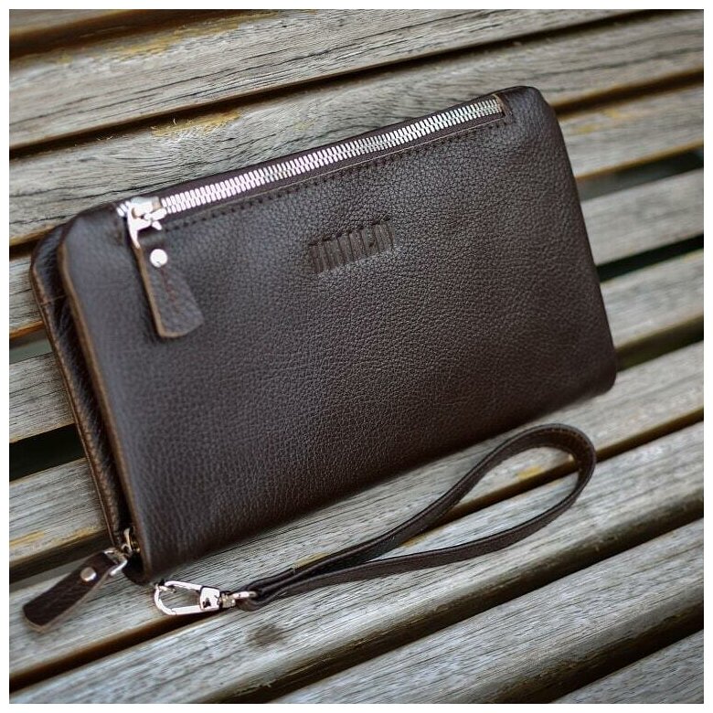 Клатч мужской из натуральной кожи с отделением для телефона Brialdi Vinci relief brown (коричневый) с ремешком на запястье