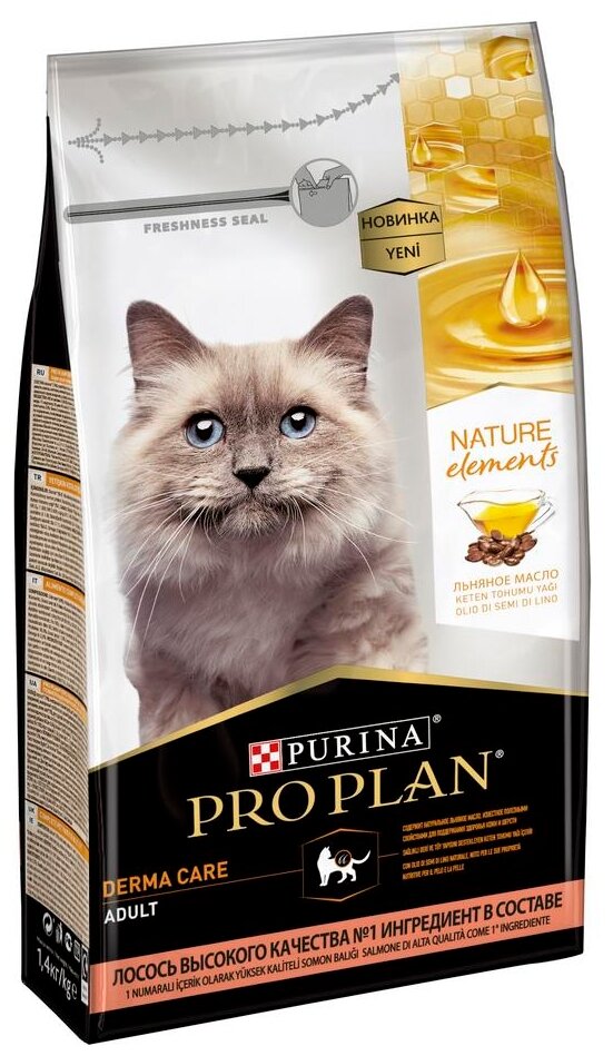 Purina Pro Plan - Корм для кошек красивая шерсть и здоровая кожа, с лососем (nature elements) 1.4кг