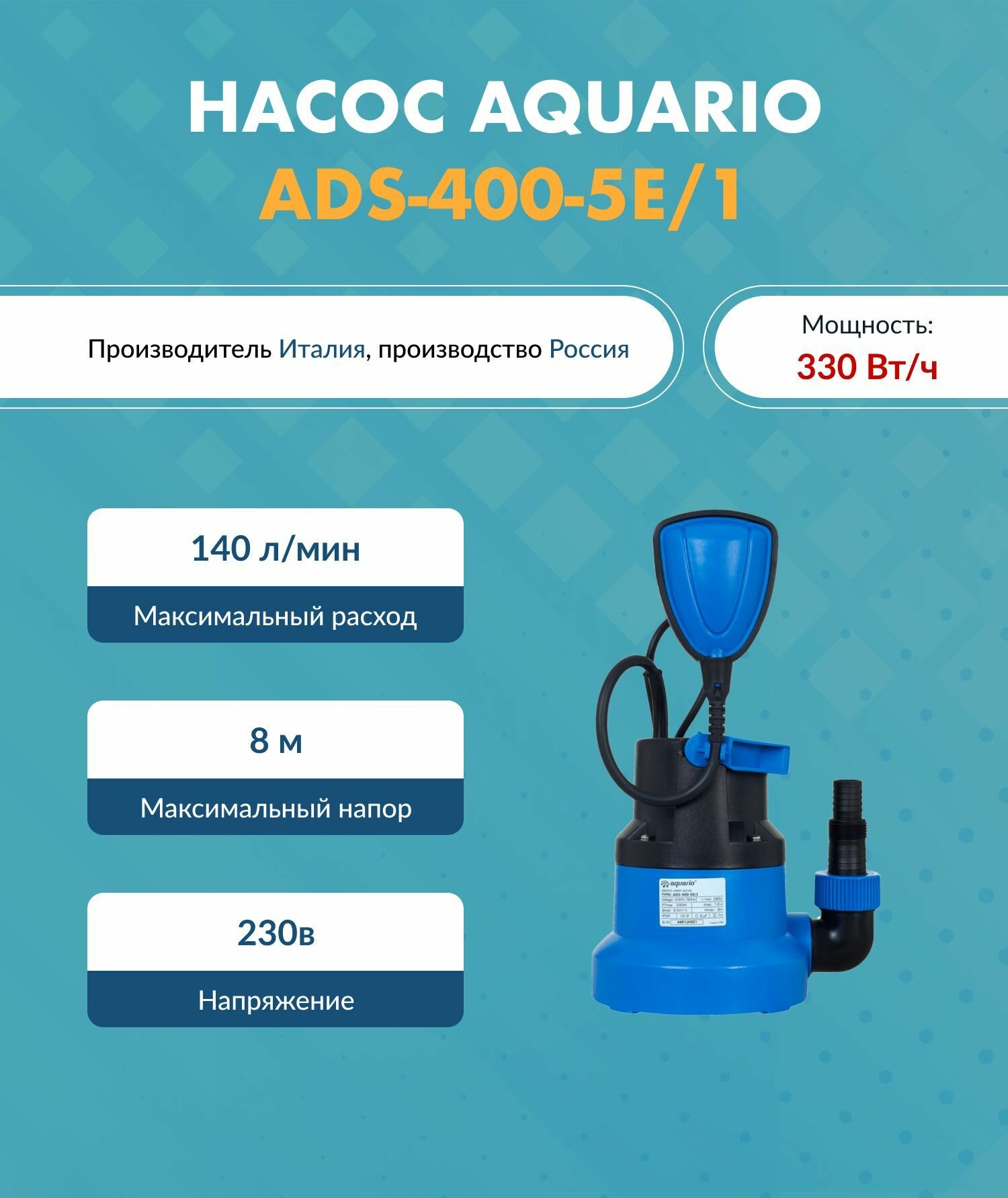 Aquario ADS-400-5E/1, Насос дренажный Акварио