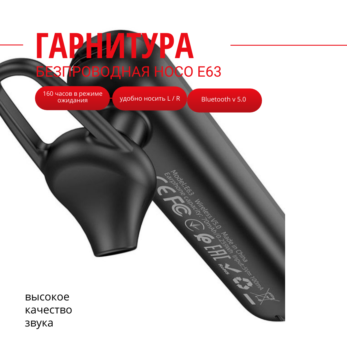 Купить HOCO / Блютуз-гарнитура черная E63