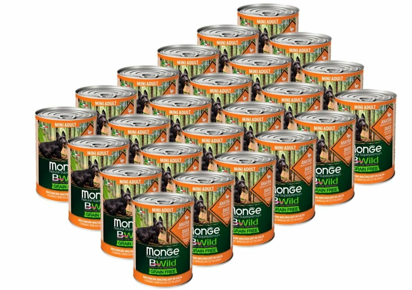 Monge Dog BWild Grainfree Adult Mini Duck / Консервы Беззерновые Монж для взрослых собак Мелких пород Утка тыква цукини (цена за упаковку) 400г х 24шт