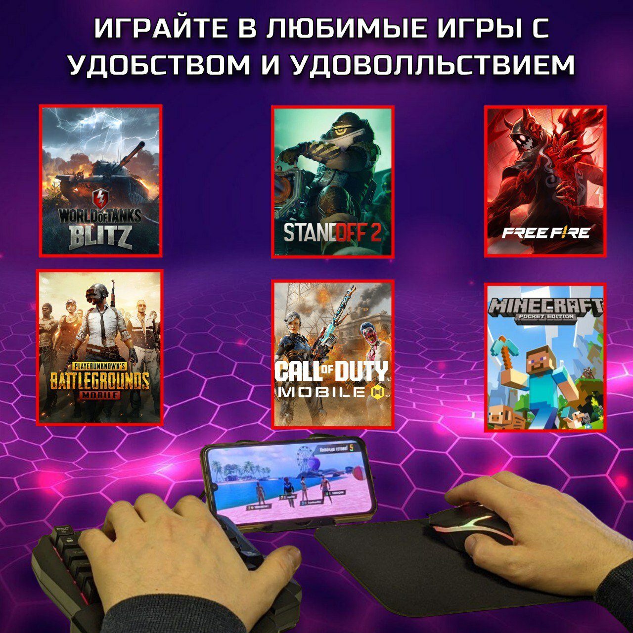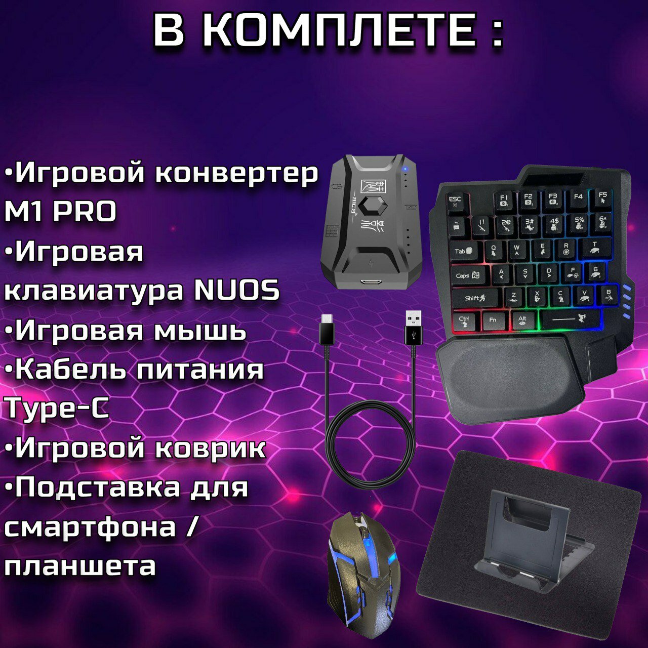 Клавиатура Мышь Геймпад игровой контроллер PUBG CODM world of tanks M1 Pro Bluetooth Android + коврик и подставка