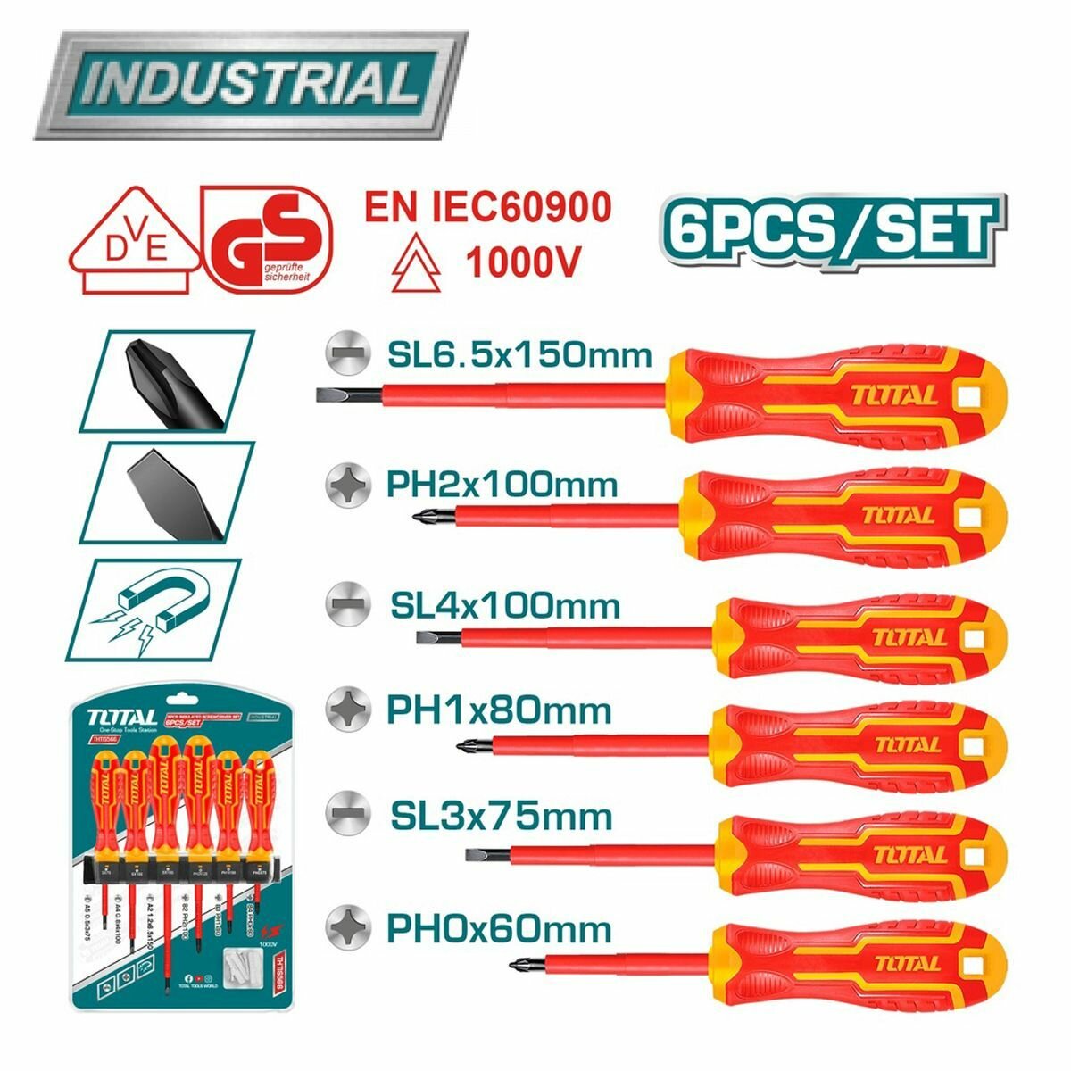 Набор отверток диэлектрических Total THTIS566, 6 предм.