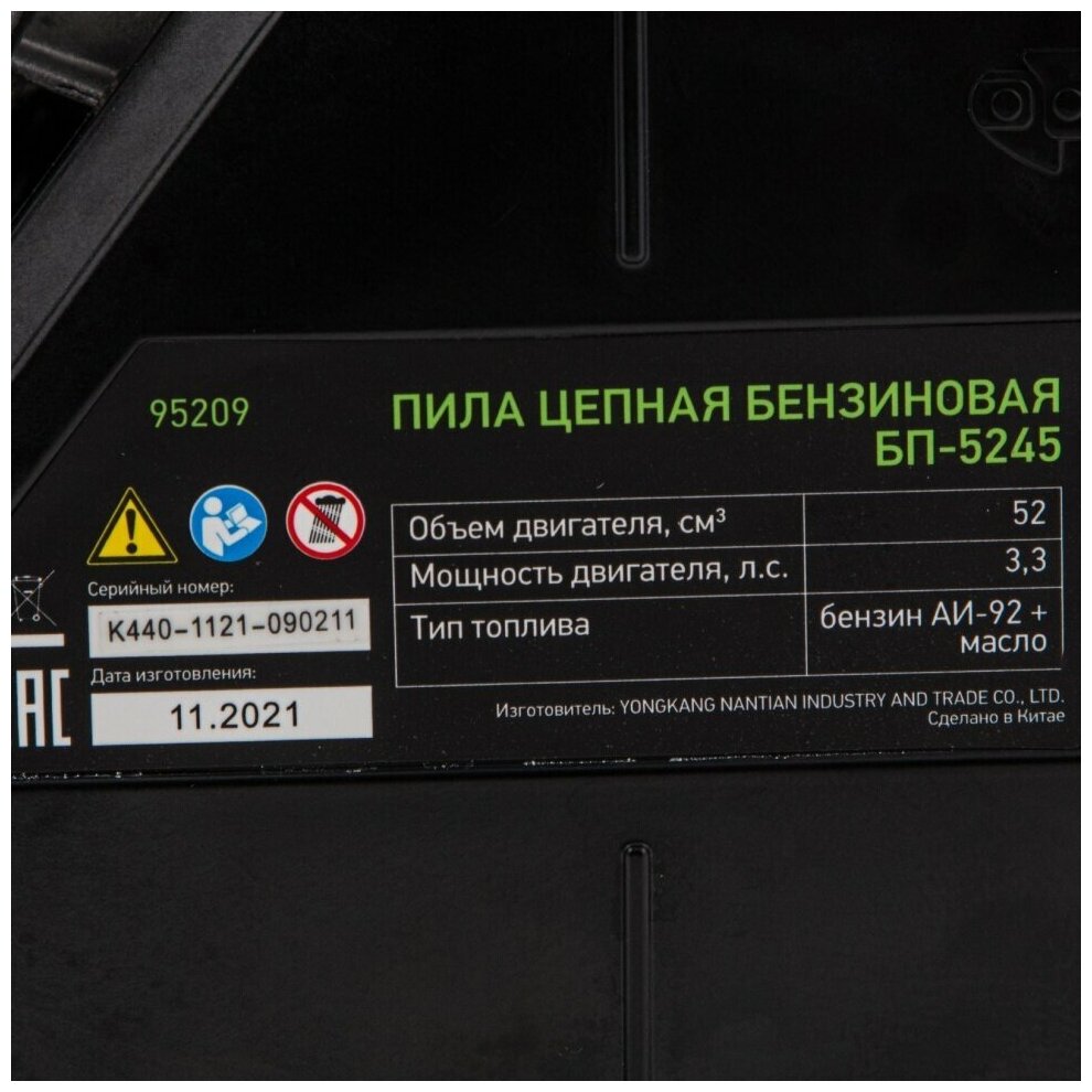 Ниже Вы можете прочитать отзывы на Пила цепная бензиновая БП-5245, 52 см3, шина 45 см, шаг 0.325, паз 1,5 мм, 72 звена Сибртех 95209, ознакомится с подробными характеристиками, посмотреть интересные обзоры и фотографии на Пила цепная бензиновая БП-5245, 52 см3, шина 45 см, шаг 0.325, паз 1,5 мм, 72 звена Сибртех 95209.