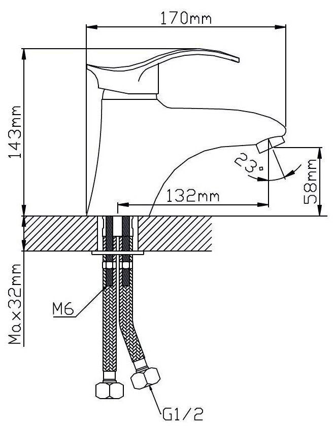 | Комплектация | смеситель, крепёж на шпильке, две гибкие подводки 1/2" длиной 35 см, паспорт изделия |