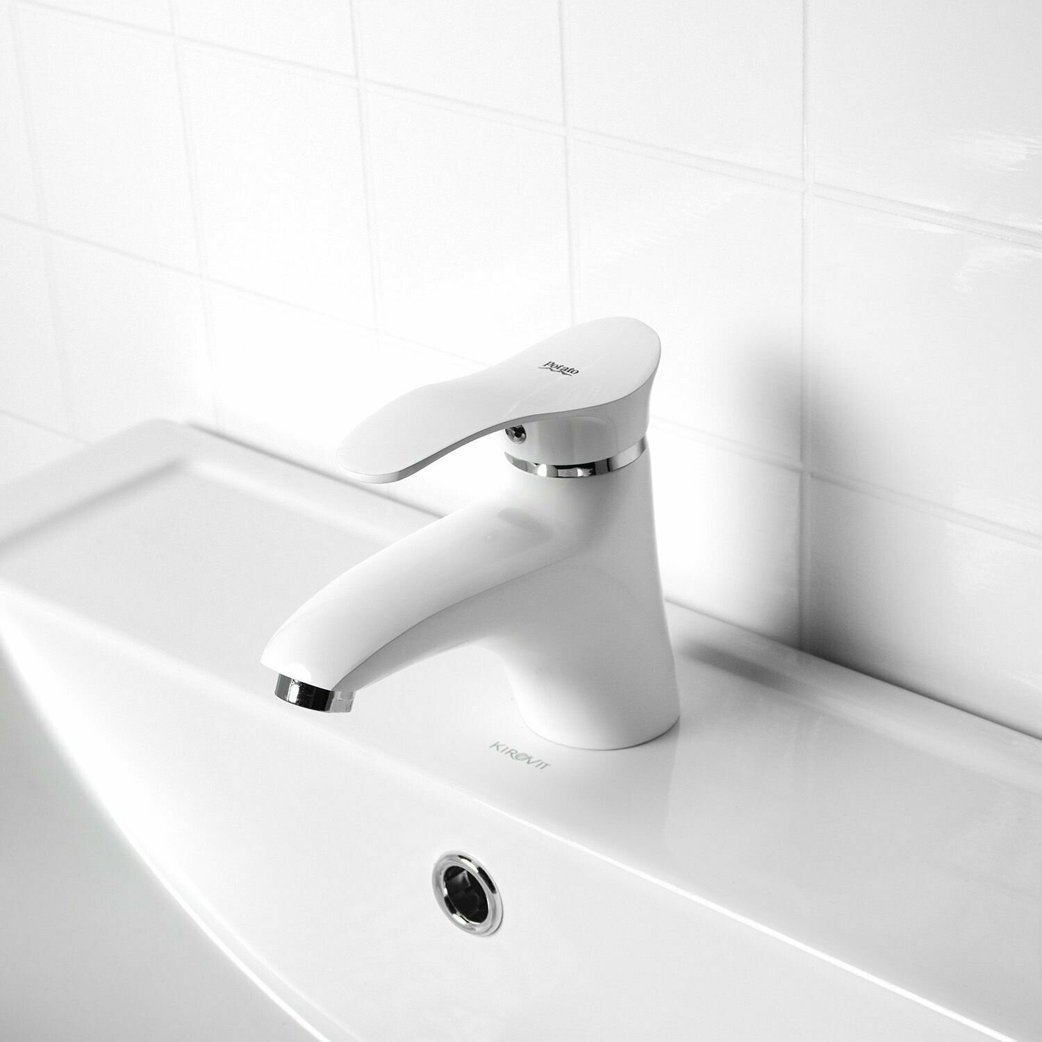 Смеситель на раковину Potato P1001-7 с монолитным изливом, картридж 40 мм, белый, крепление шпилька