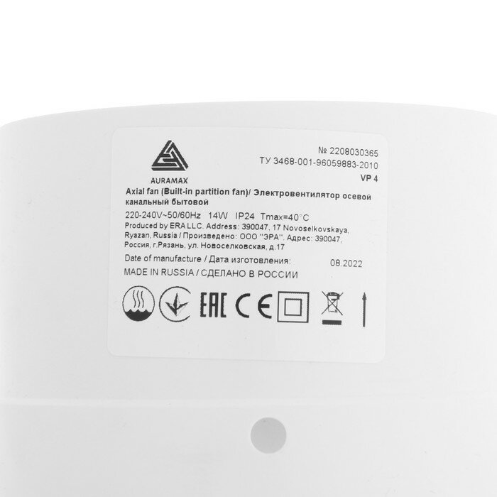 Вентилятор вытяжной AURAMAX VP 4, 103x103 мм, d100 мм, 220 В, 14 Вт, 35 дБ, канальный интересное: