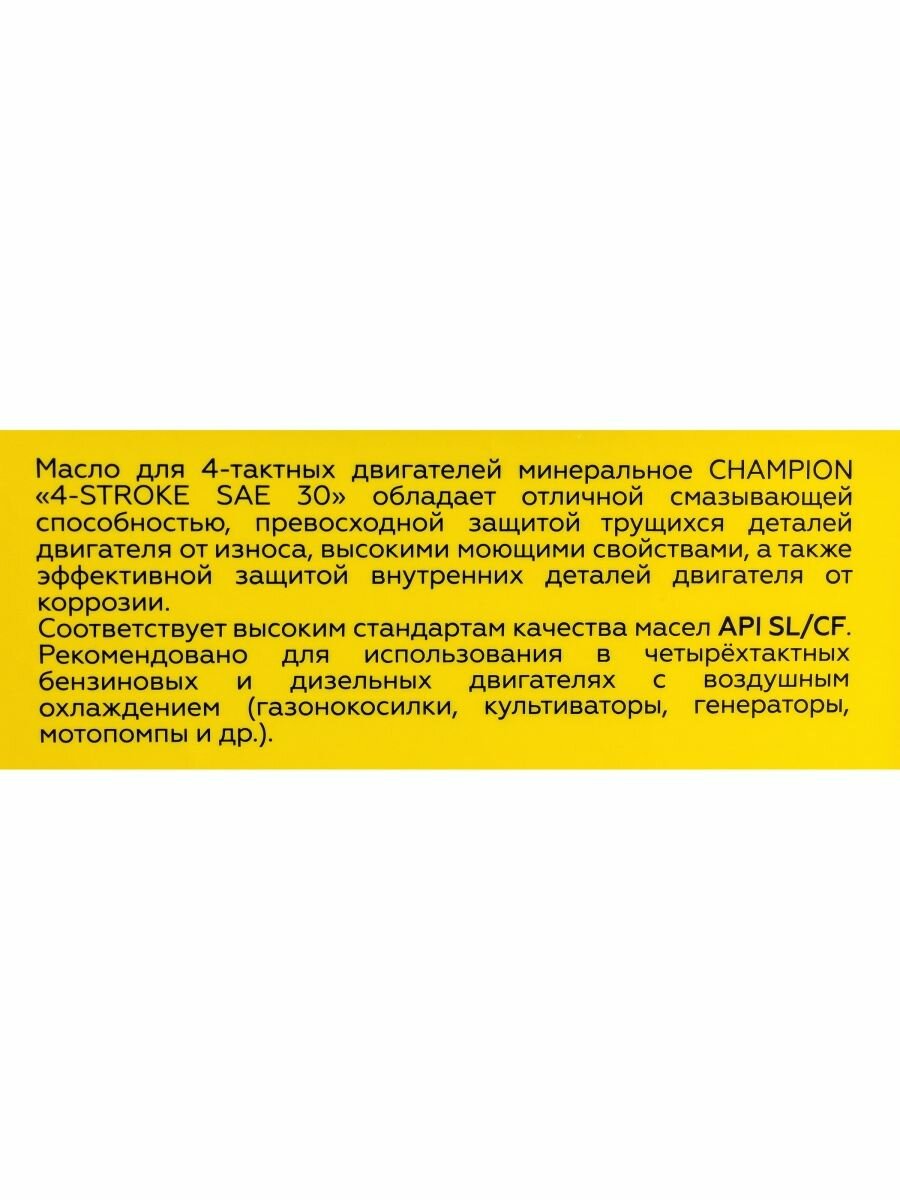 Минеральное масло для четырехтактных двигателей Champion SAE 30 952852