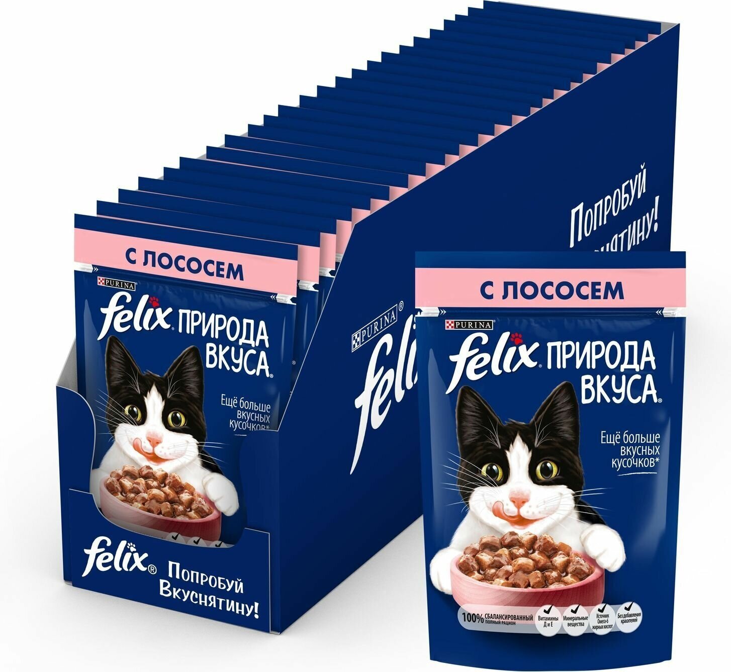 Влажный корм Felix Аппетитные кусочки для взрослых кошек, с лососем в желе, Пауч, 85 г, 26 шт