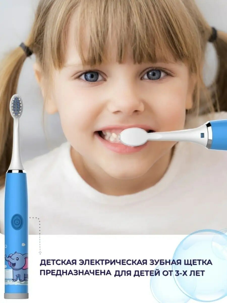 Купить Детская Электрическая зубная щетка Beautiful Smile, для детей 3-7 лет, с 5 насадками, и батарейкой в комплекте - Слоненок