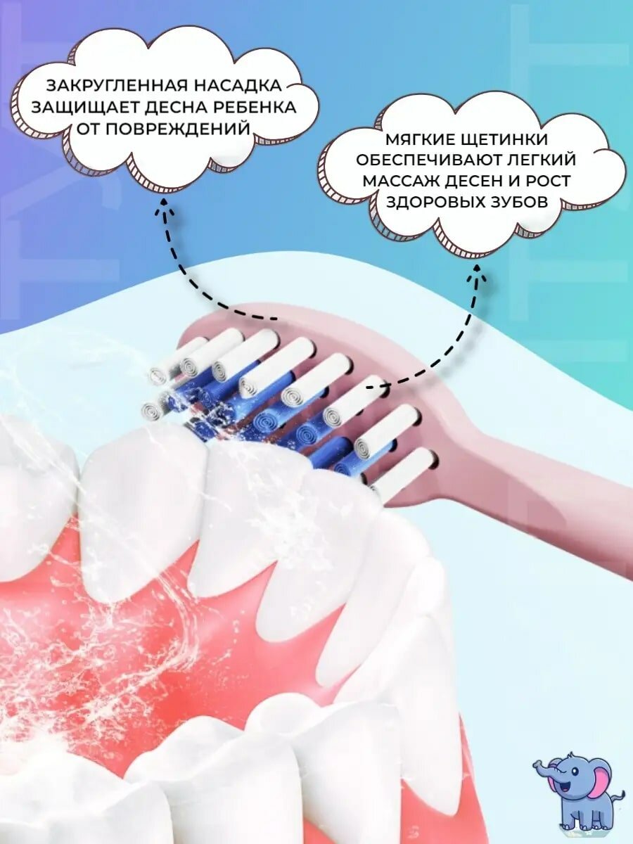 СохранитьДетская Электрическая зубная щетка Beautiful Smile, для детей 3-7 лет, с 5 насадками, и батарейкой в комплекте - Слоненок интересное: