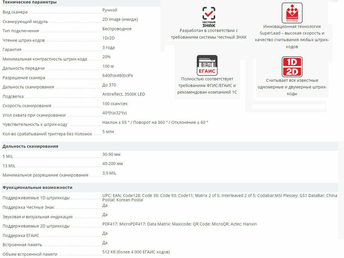| Комплектация | Сканер, Кабель USB type A (205 см), Инструкция, Гарантийный талон, Упаковка |