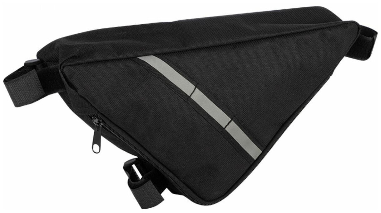| Дополнительная информация | по бокам сумки утолщения из вспененного материала для защиты вещей в сумке; небольшая и изящная, хорошо крепится на велосипедную раму, не касается ваших ног во время движения; светоотражающие ленты с обеих сторон обеспечивают предупреждающий эффект и обеспечивают безопасность при ночной езде; подходит для большинства велосипедов; водостойкая и прочная, помогает защитить хранящиеся предметы и легко очищается; 3 регулируемых ремешка на липучке обеспечивают стабильную и надежную установку |