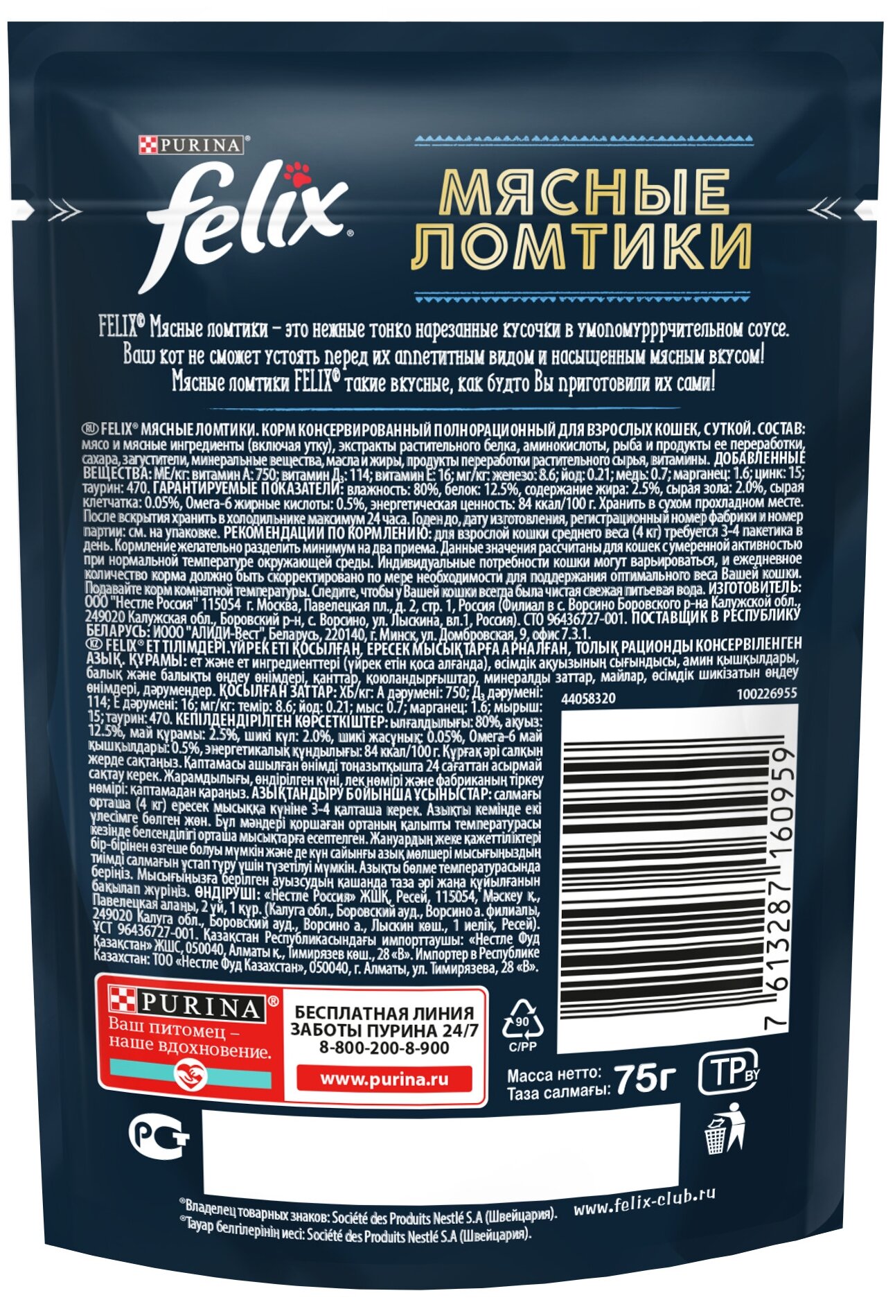 Felix Мясные Ломтики влажный корм для взрослых кошек, с уткой, 75 гр., 1 шт.