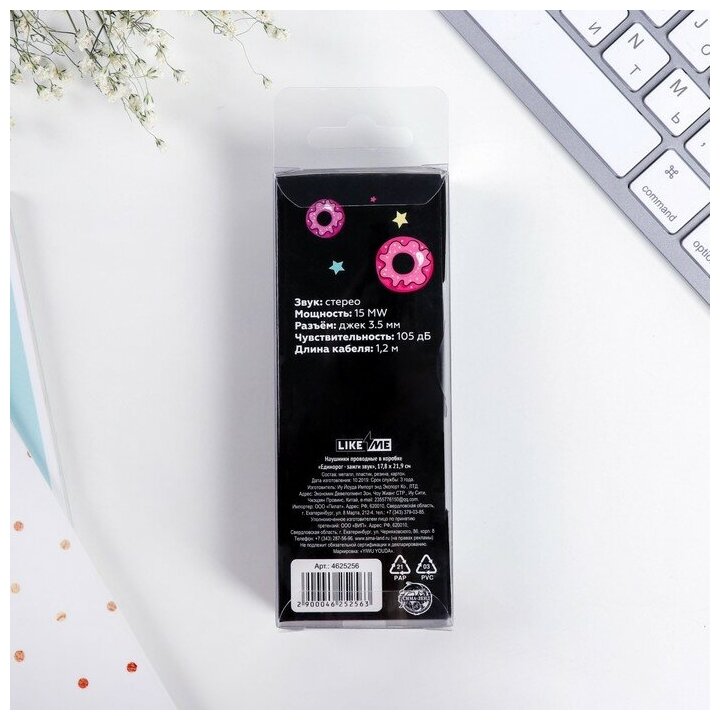 Like me Наушники проводные в коробке, «Единорог - зажги звук», вакуумные, черные