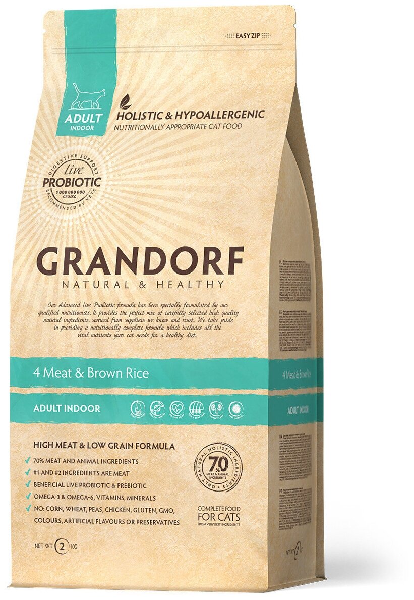 Грандорф CAT д/кошек Meat&Rice PROBIOTIC INDOOR (4мяса с рисом и пробиотиками) 2кг
