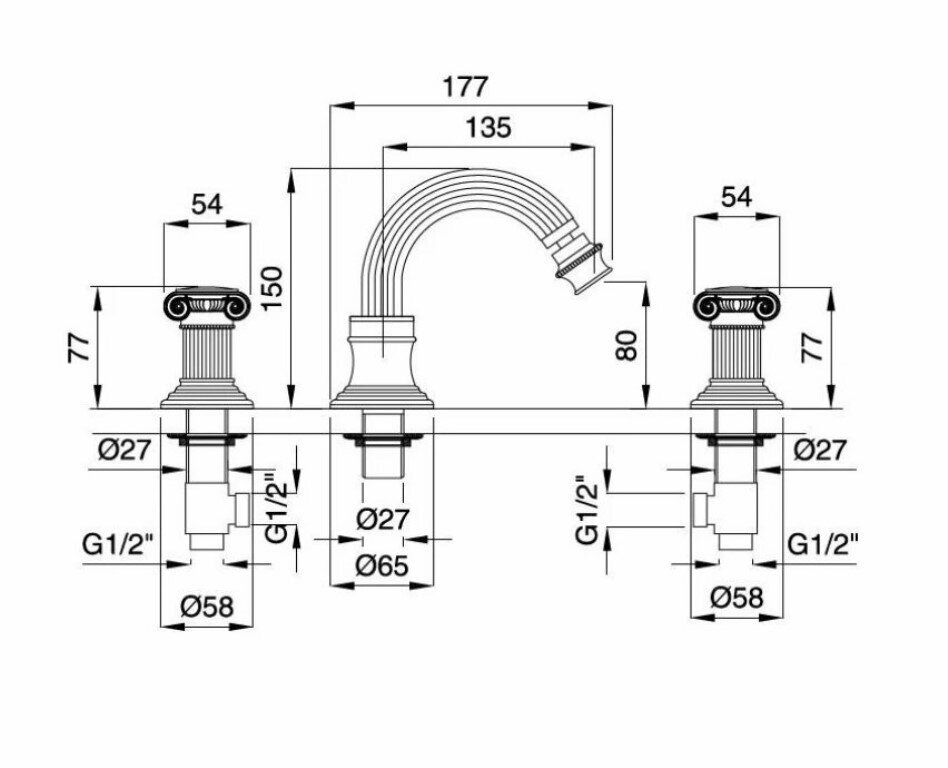 Смеситель для биде на три отверстия Cezares Olimp Хром Olimp-Bbs2-01-O