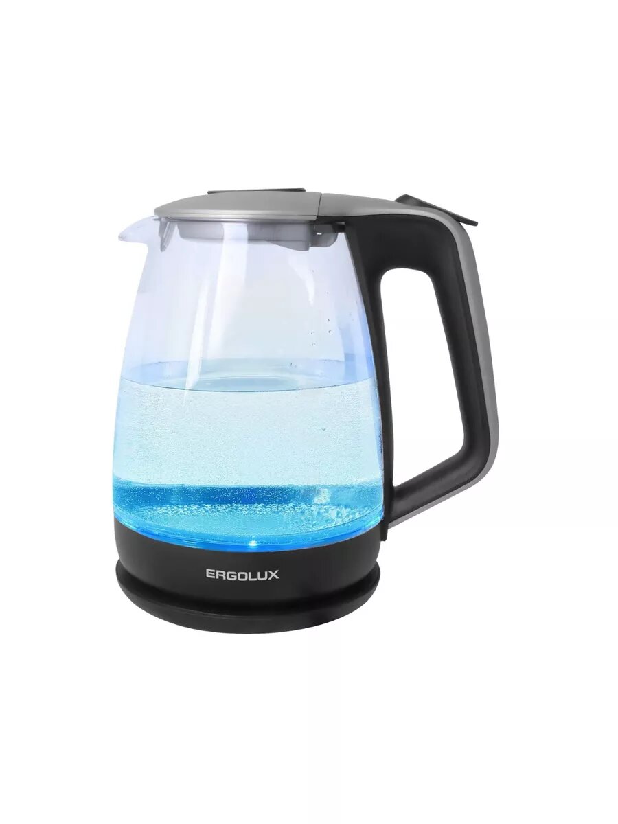 Купить Чайник стеклянный ELX-KG01-C42 серебристо-черный (1.7л, 160-250В, 1500-2300Вт) ERGOLUX