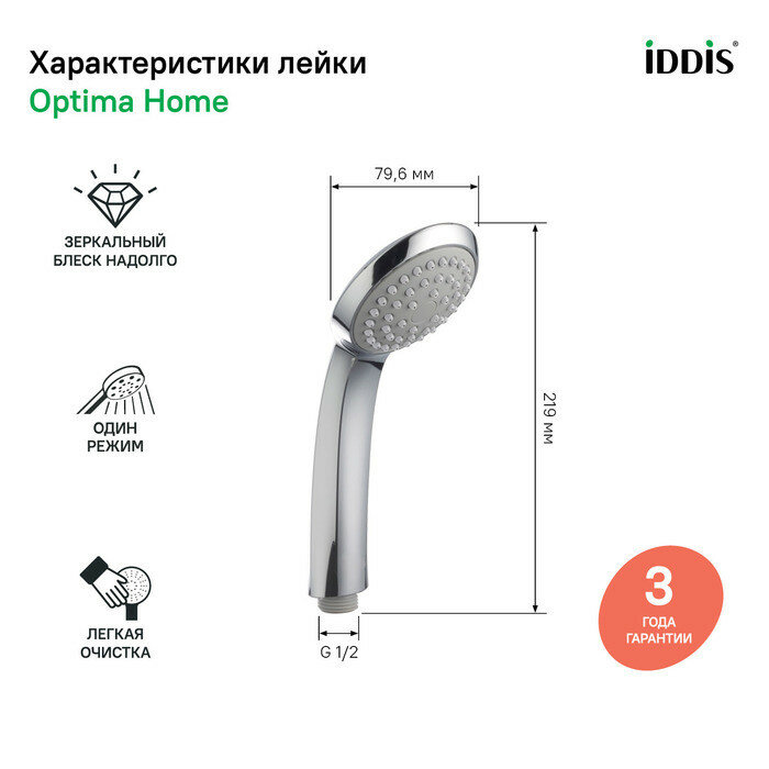 Лейка для душа Iddis d80 мм 1 режим без шланга пластик хром (A11011)