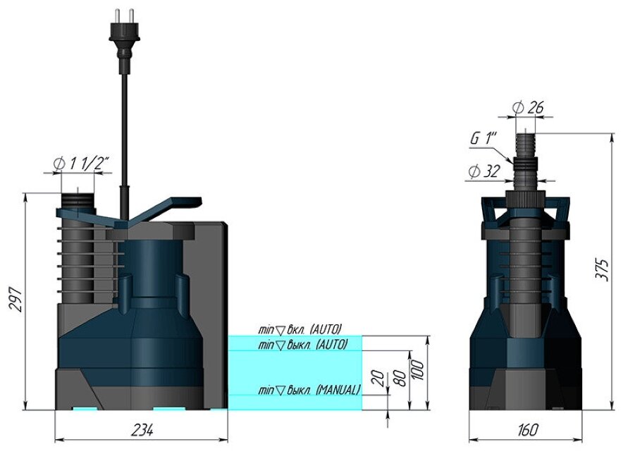 | Тип погружного насоса | дренажный |