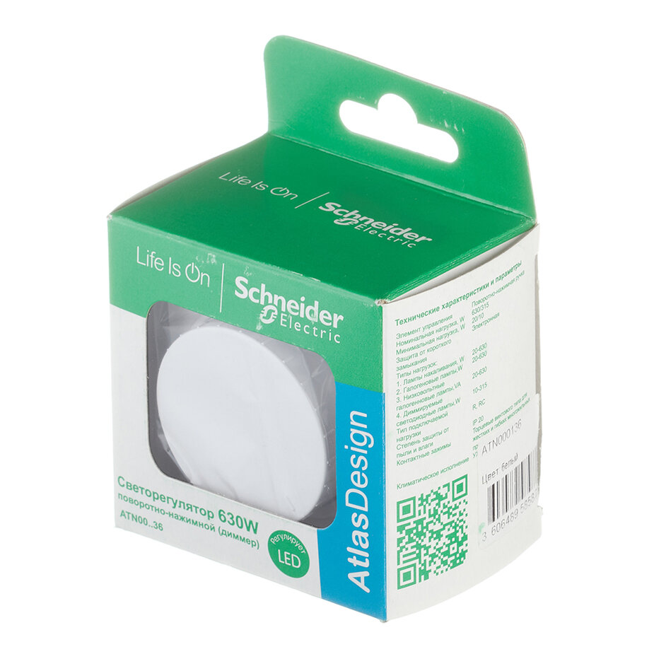 Диммер поворотно-нажимной AtlasDesign, белый Schneider Electric ATN000134